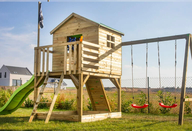 Z nami przygotujesz dla swoich pociech bezpieczną i atrakcyjną wizualnie przestrzeń! Jeśli zastanawiasz się, jaki ogrodowy domek z drewna dla dzieci ze zjeżdżalnią i huśtawkami wybrać do swojego podwórka, na naszej stronie internetowej znajdziesz wyjątkowe propozycje wyposażenia i inspiracje. Konstrukcję w miarę upływu lat będziesz mógł dostosowywać do swoich potrzeb. Dzięki temu drewniany plac zabaw będzie mógł służyć Twoim dzieciom przez naprawdę długi czas. Wykonane z wysokiej jakości drewna zabawki doskonale się prezentują, dzięki czemu nie tylko nie zaburzą harmonii ogrodu, ale urozmaicą go i uczynią jeszcze bardziej atrakcyjnym. Zapraszamy do zapoznania się z naszą ofertą!