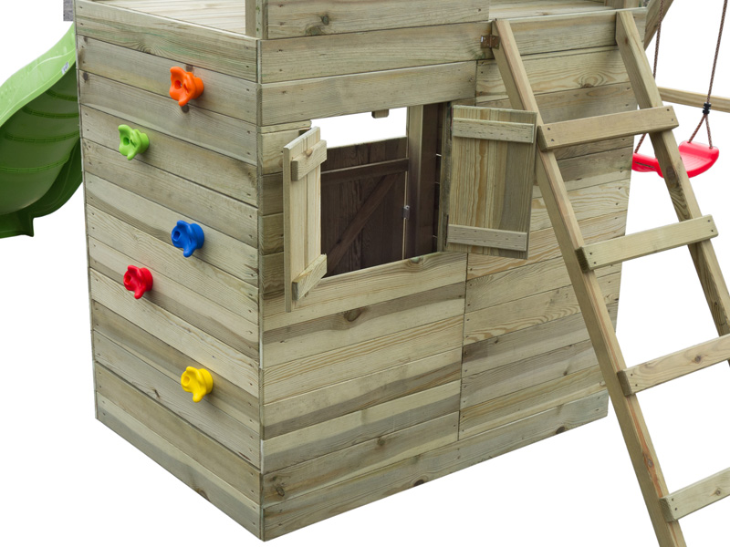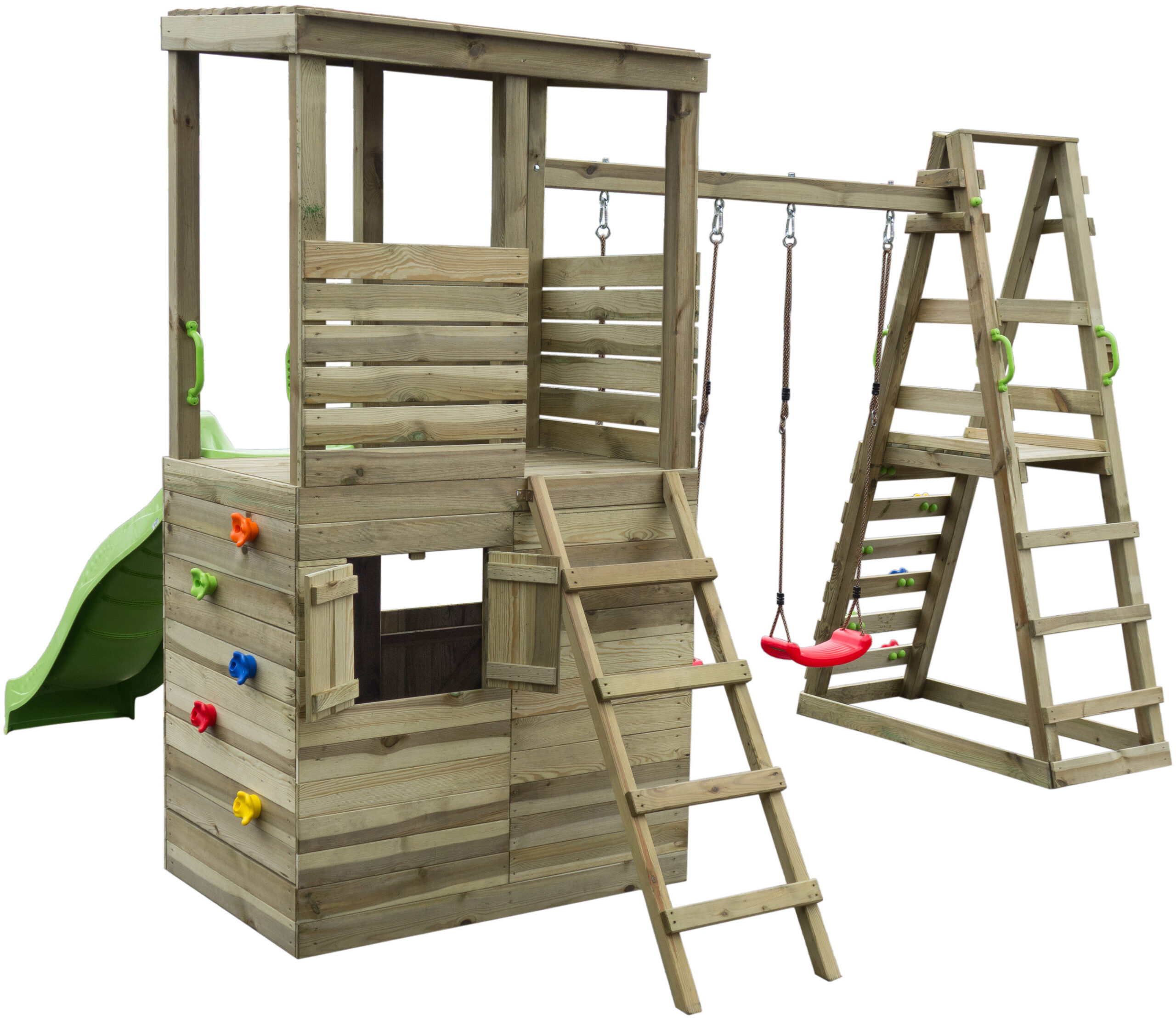 W naszym sklepie internetowym znajdziesz drewniane konstrukcje, które dostarczają maluchom mnóstwa frajdy. Wśród nich warto wyróżnić dziecięcy domek ogrodowy ze zjeżdżalnią Sebken 46 w wersji B, który ma dodatkową instalację ze ścianką wspinaczkową. Jest to plac zabaw dla małych poszukiwaczy przygód. Projekt ten składa się z domku, podwójnej huśtawki i kolorowego ślizgu. Spraw prezent swojemu dziecku i wybierz tę atrakcję do ogrodu!