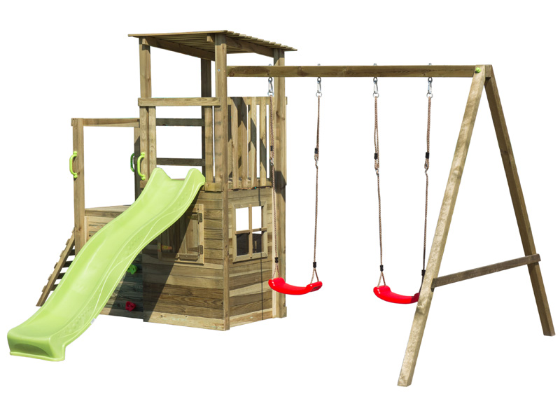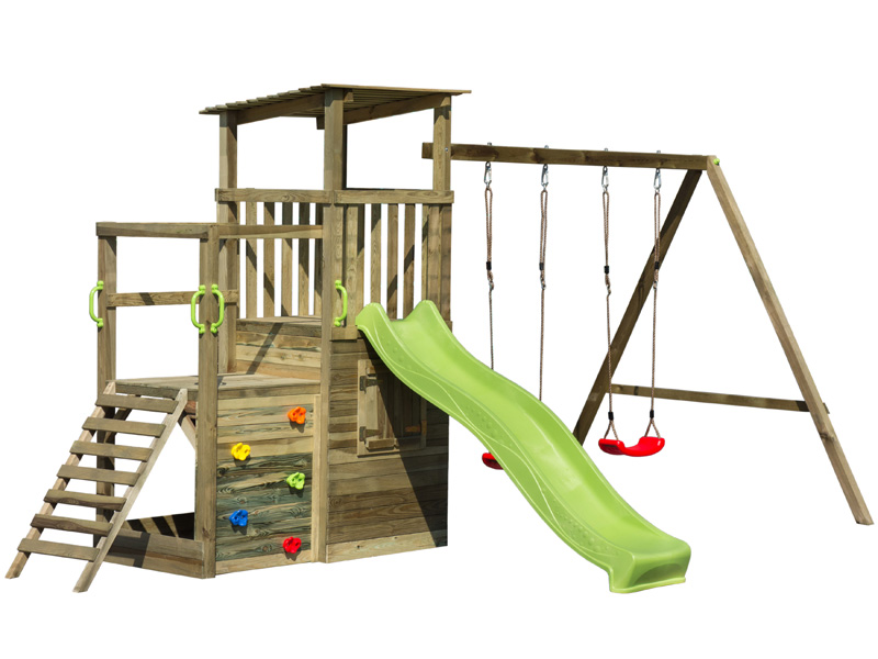 Praktyczna konstrukcja zapewniająca najmłodszym moc atrakcji? Ogrodowy plac zabaw z drewna Sebken 45 daje mnóstwo możliwości, jeśli chodzi o aktywność ruchową. Tworzy go drewniany domek dla dzieci do ogrodu z huśtawkami, zjeżdżalnią czy ścianką wspinaczkową. Idealna propozycja dla mniejszych i większych pociech, które poprzez użytkowanie takiego obiektu mogą zadbać o rozwój fizyczny. Sprawdź i skorzystaj z oferty naszego sklepu Sebken.pl.